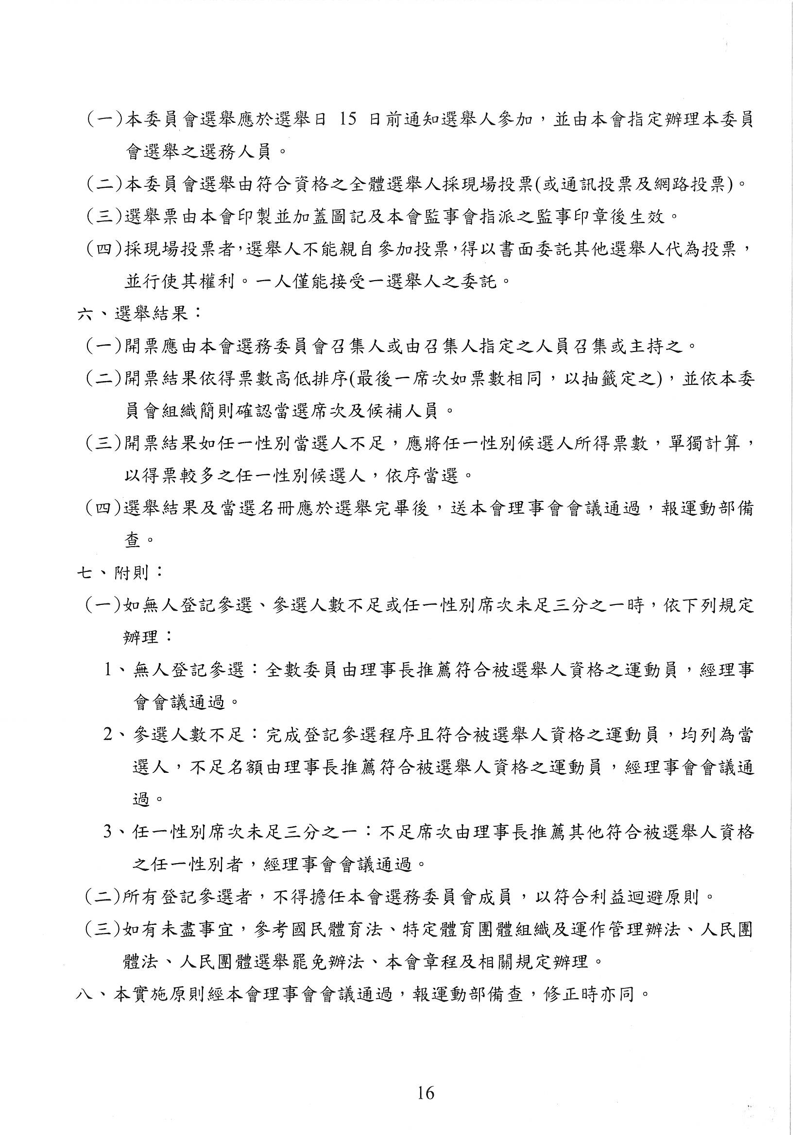 中華民國卡巴迪運動協會運動員委員會選舉實施原則
