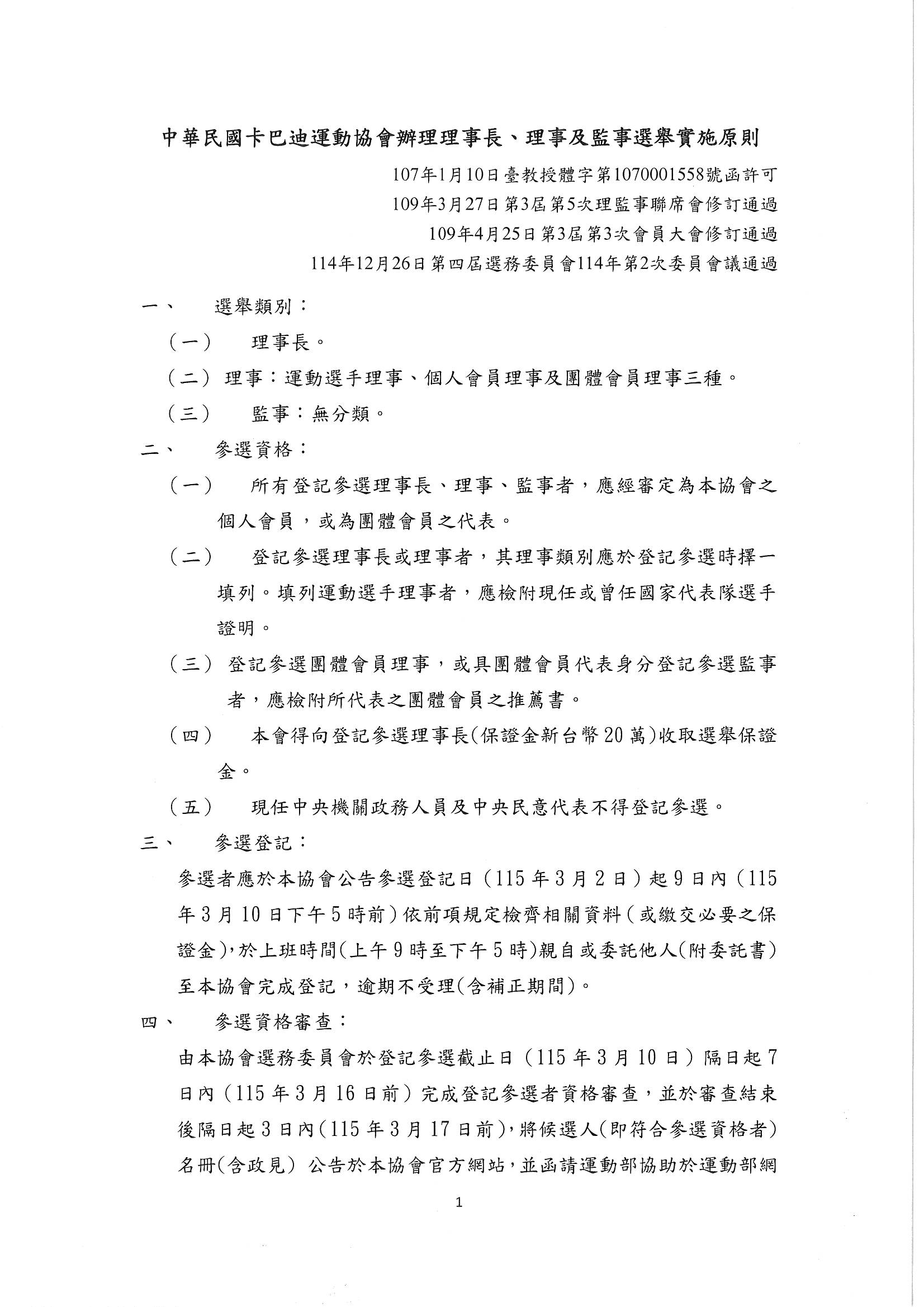 中華民國卡巴迪運動協會辦理理事長、理事及監事選舉實施原則