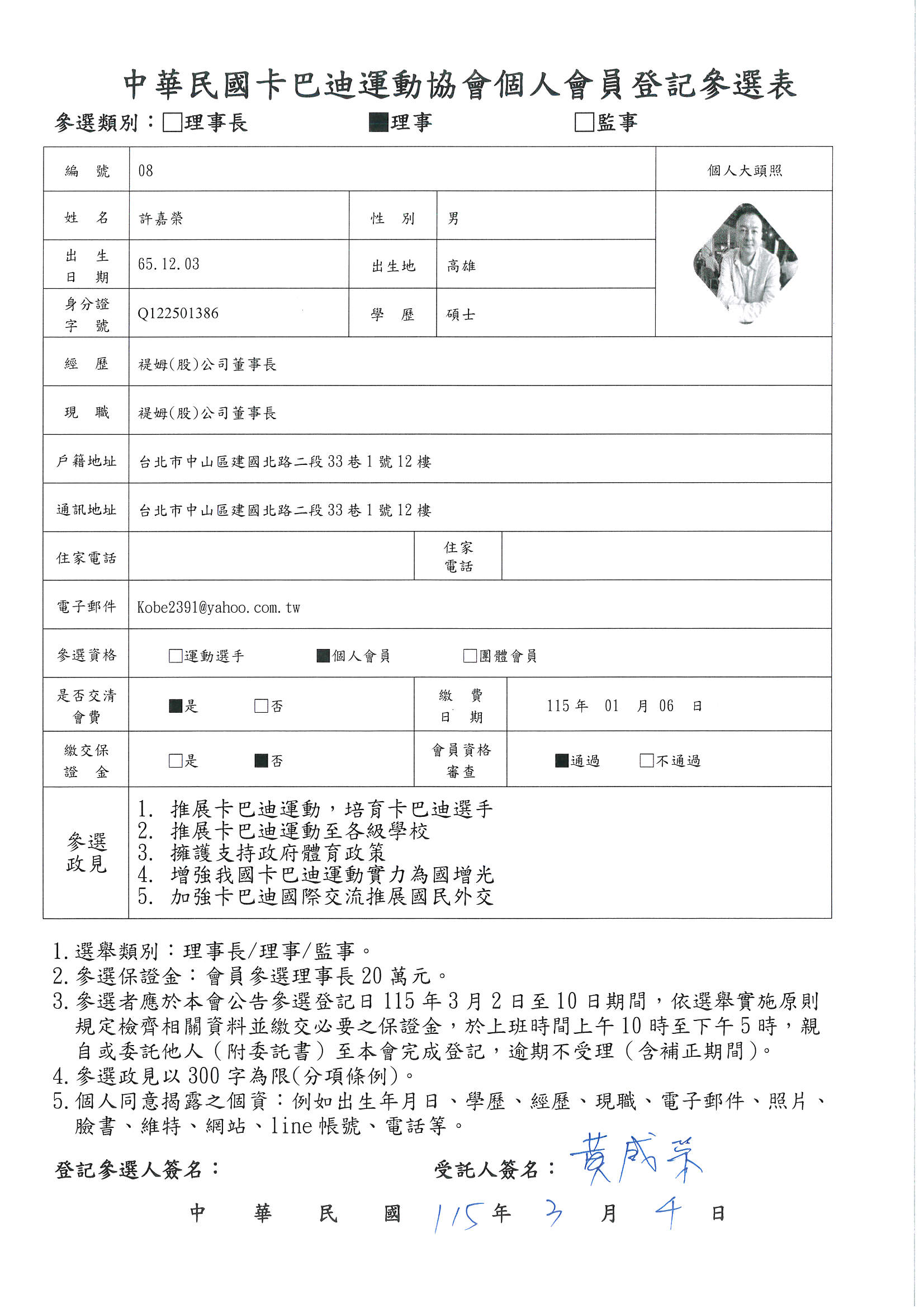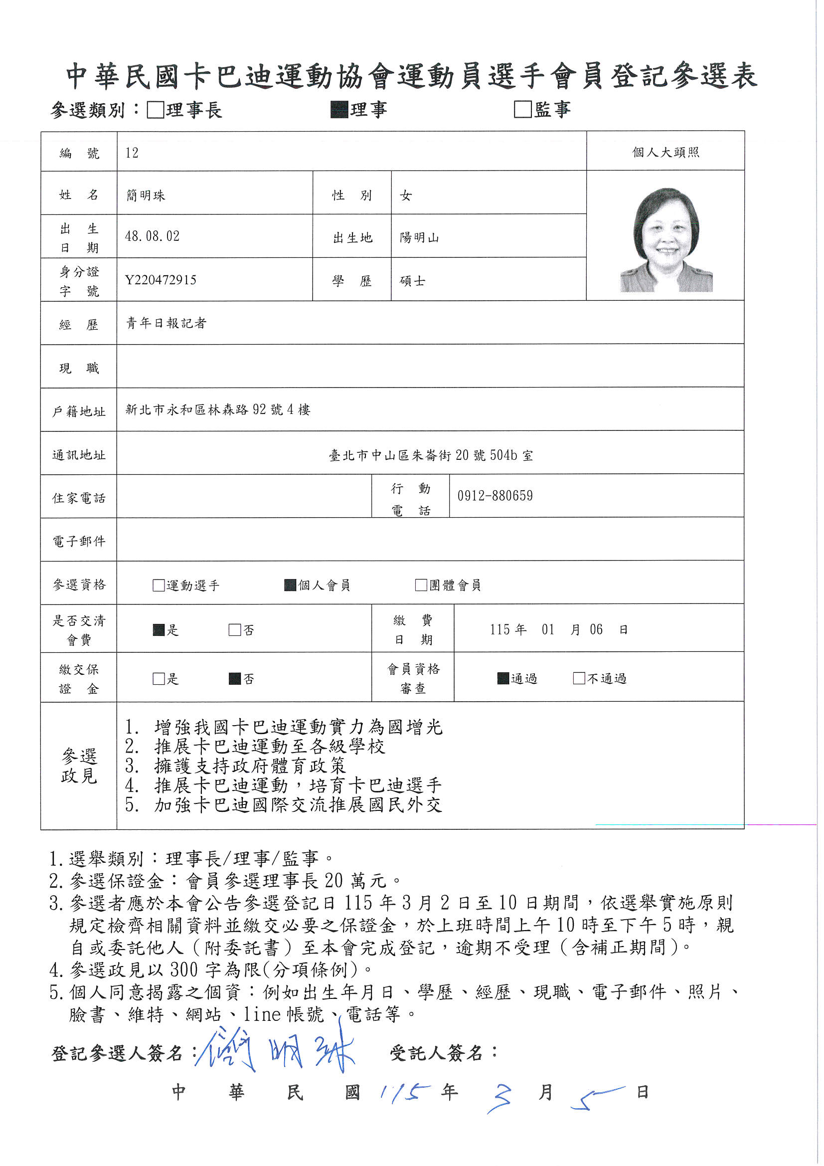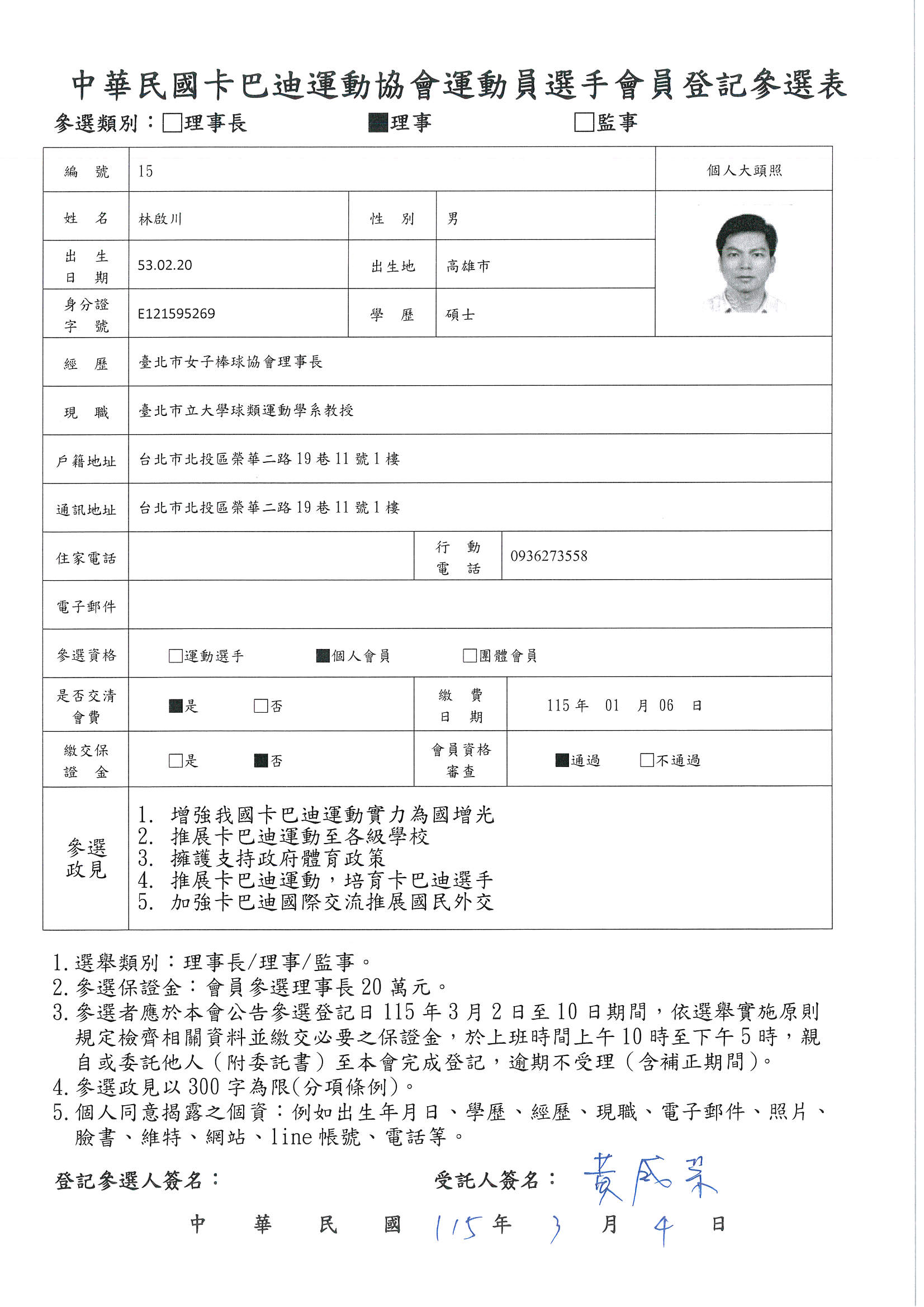 第五屆理事長參選登記候選人