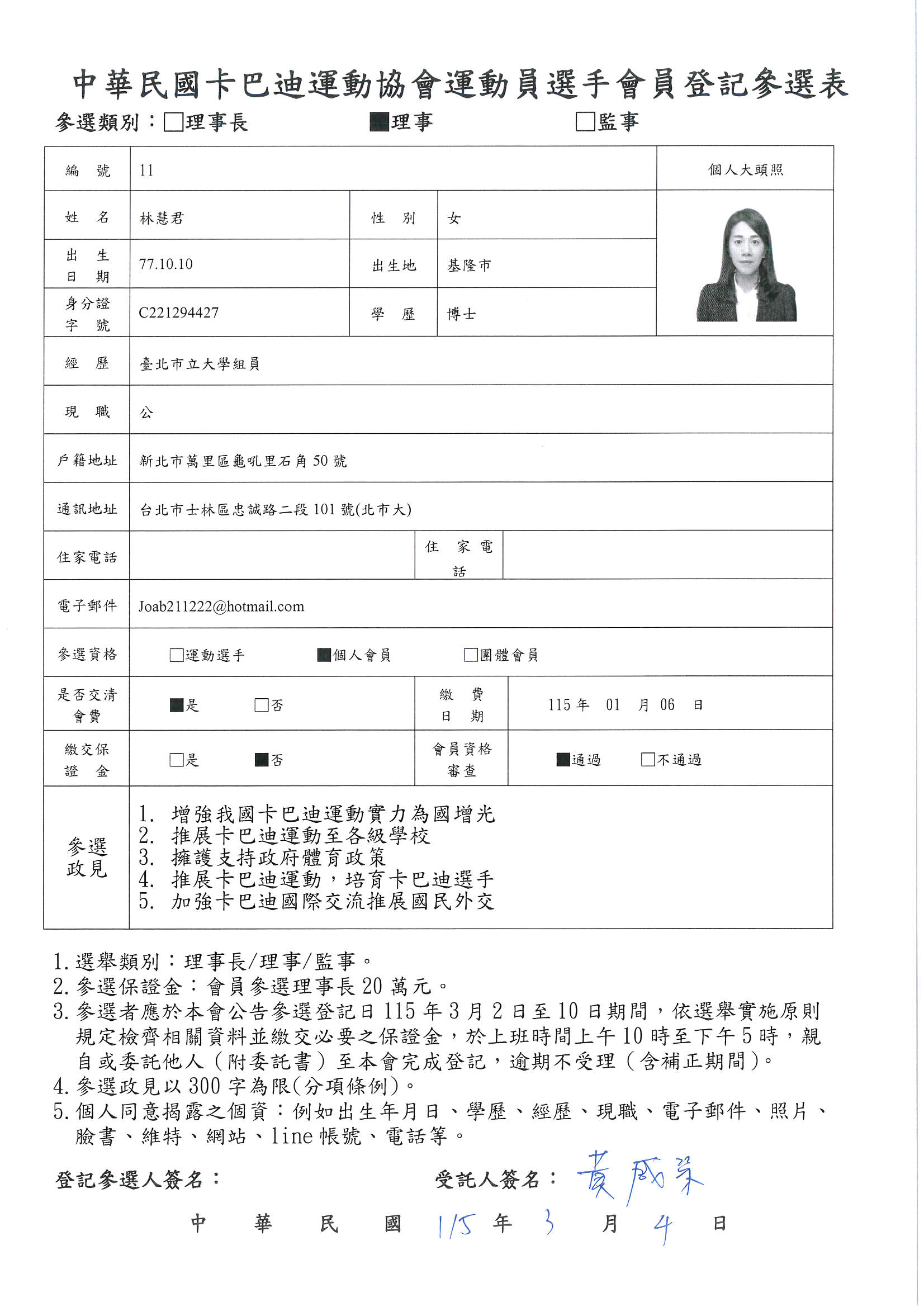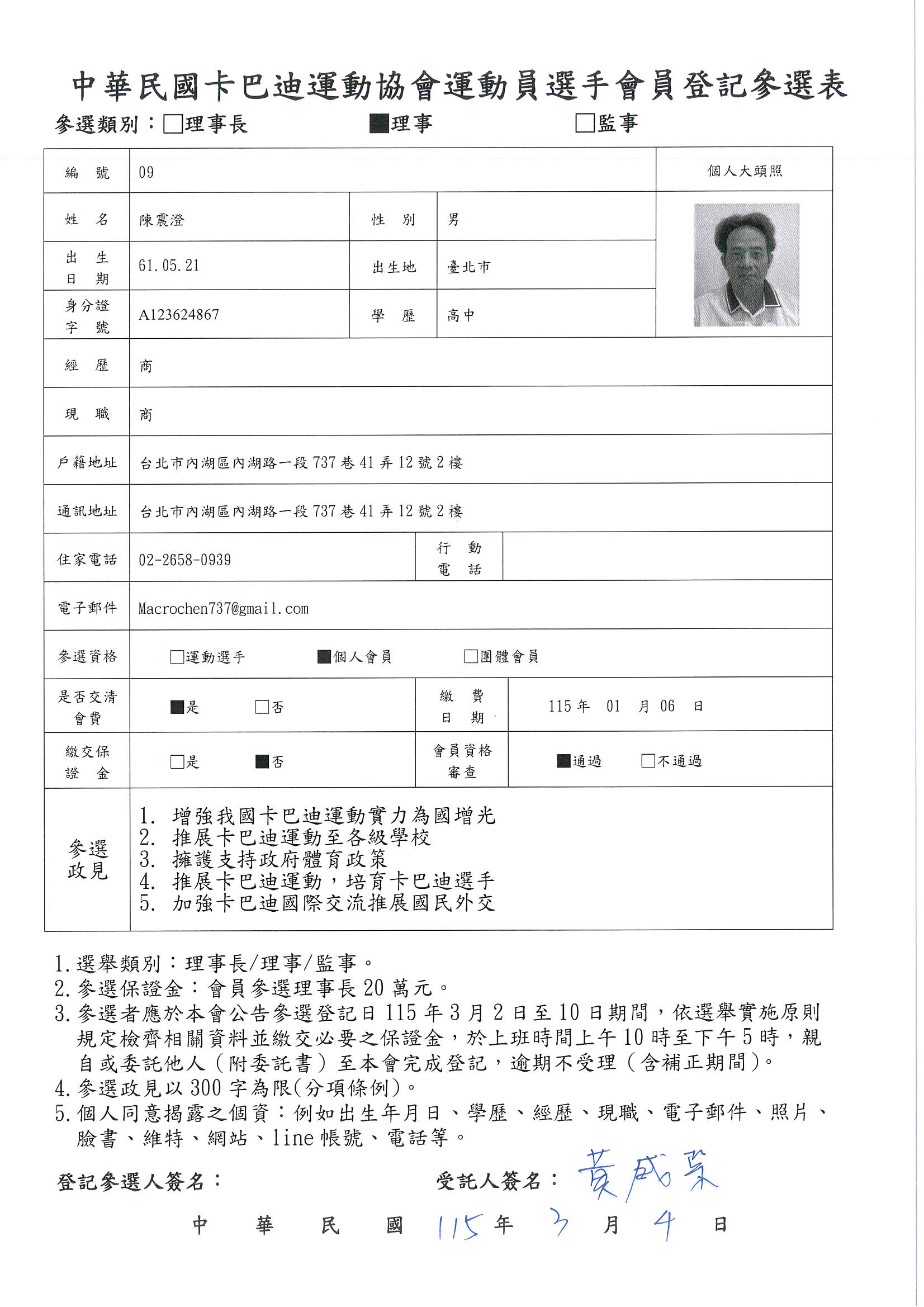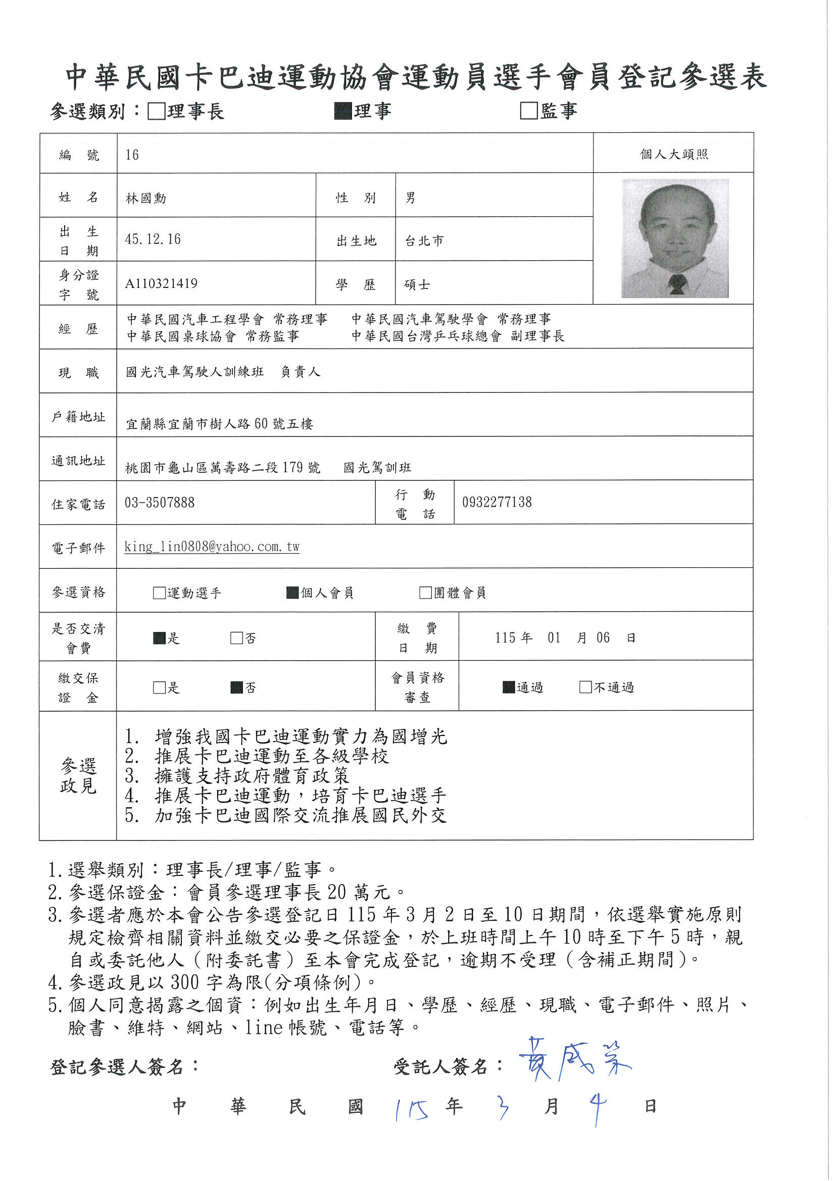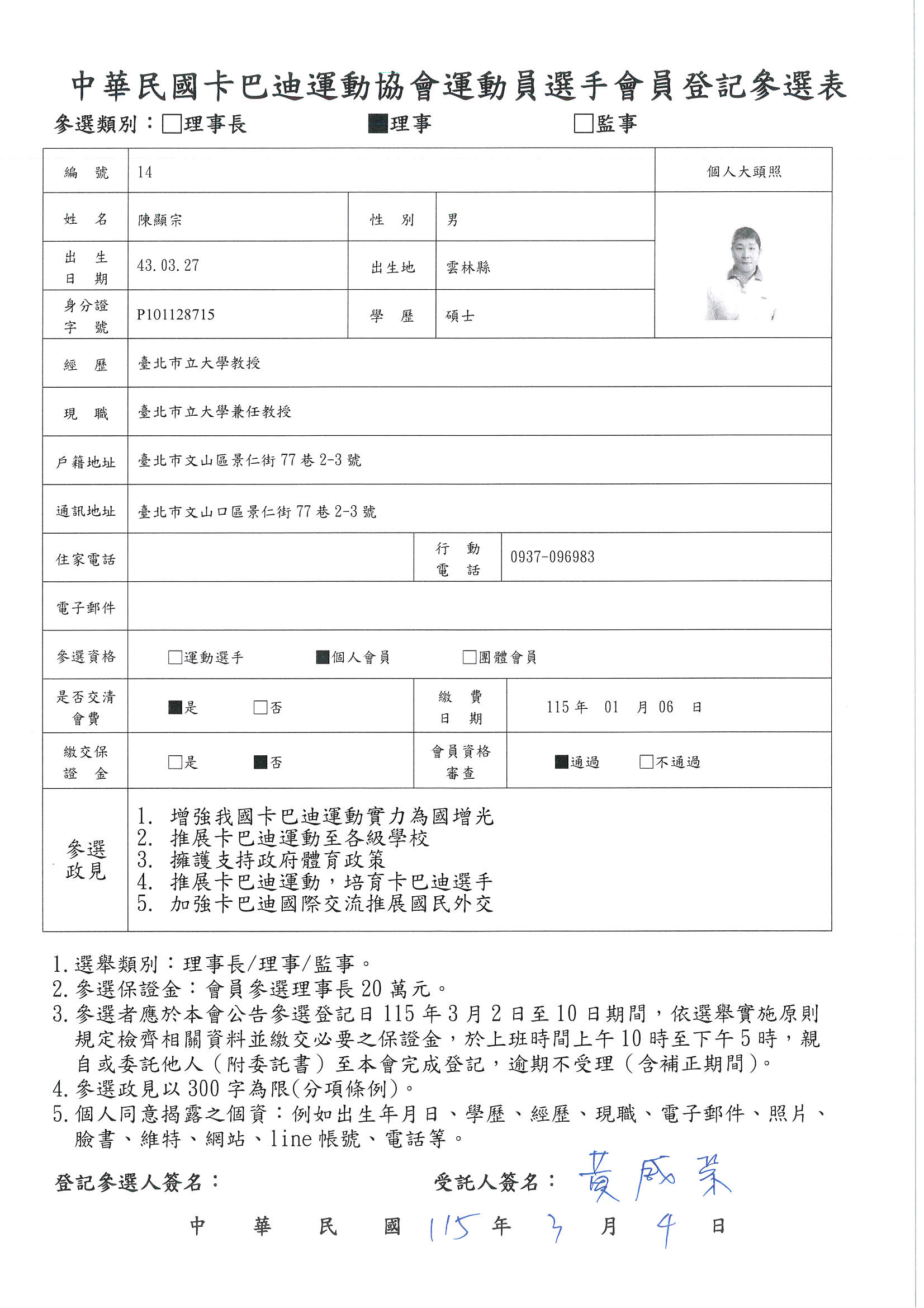 第五屆理事長參選登記候選人