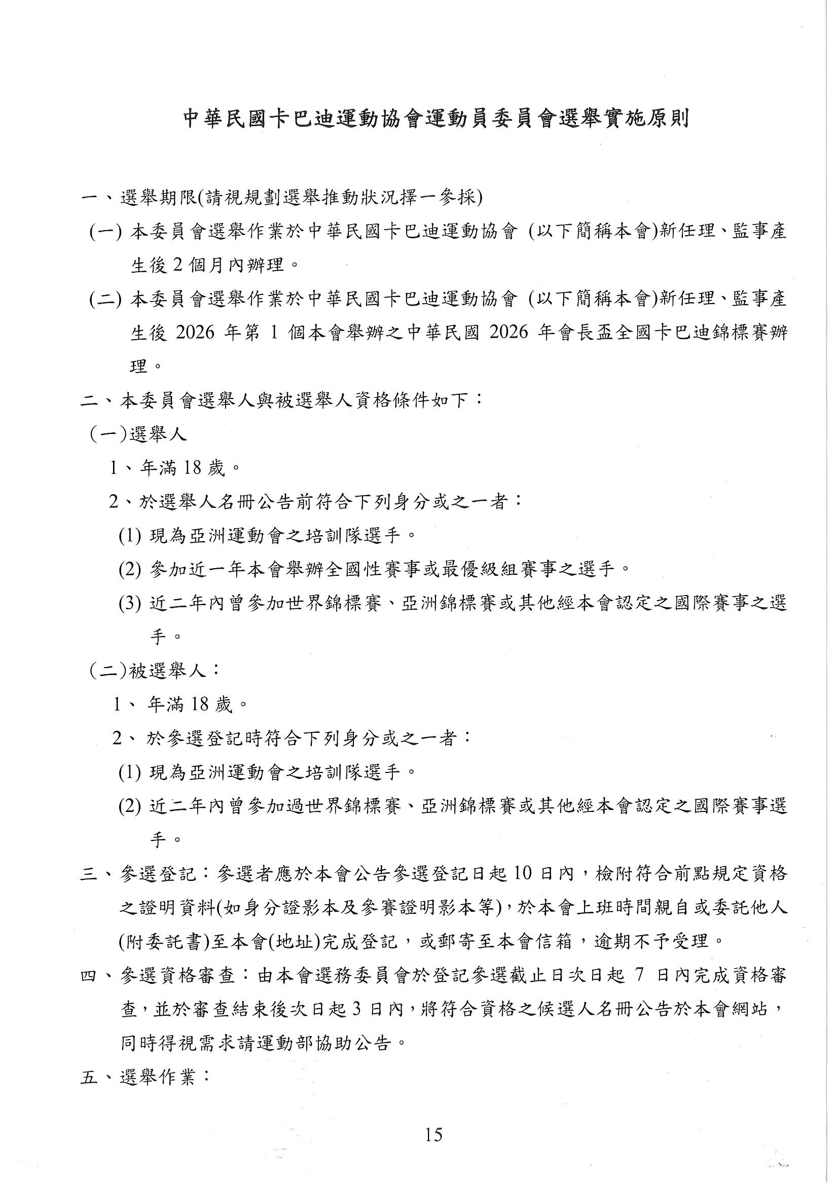中華民國卡巴迪運動協會運動員委員會選舉實施原則