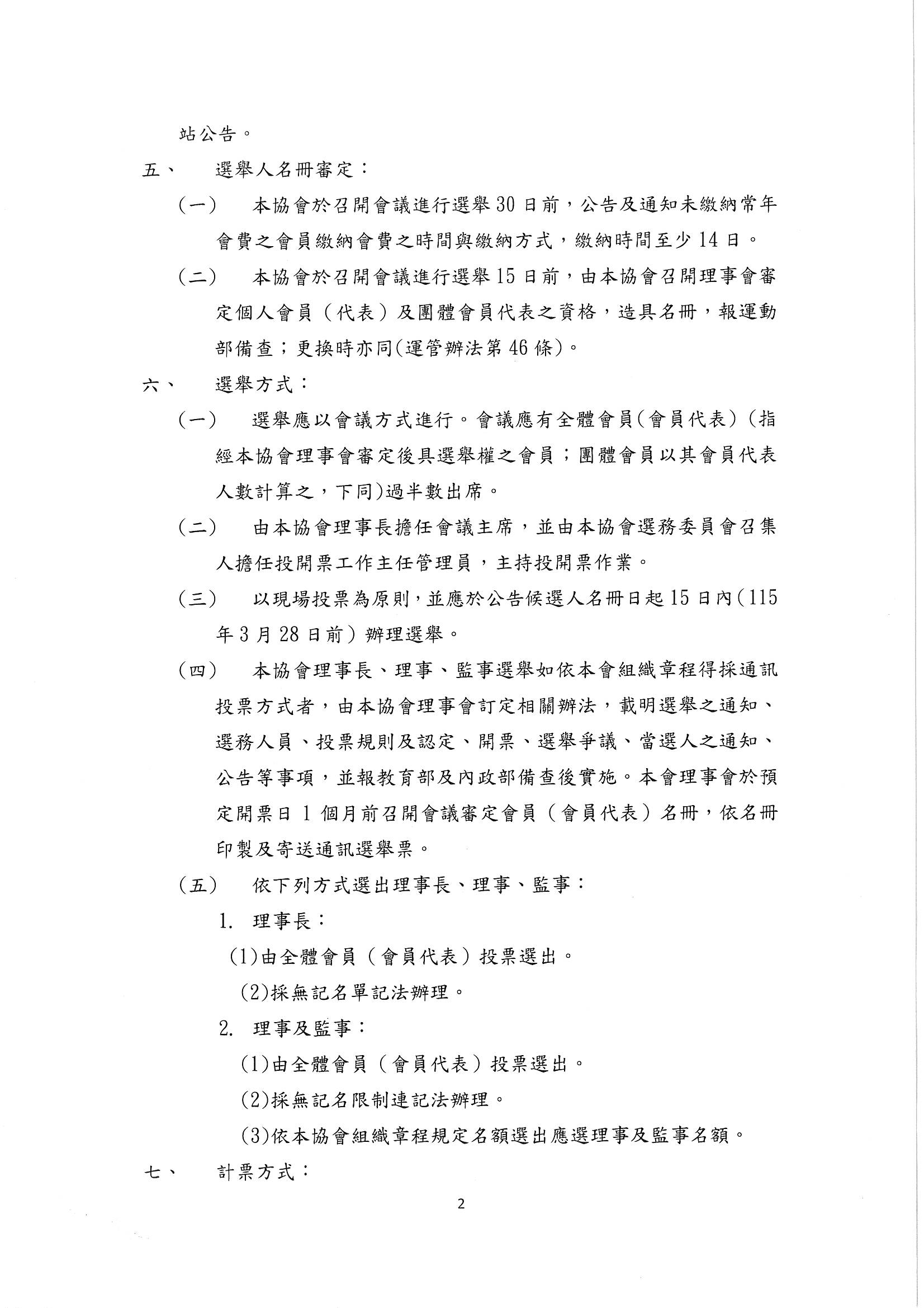中華民國卡巴迪運動協會辦理理事長、理事及監事選舉實施原則