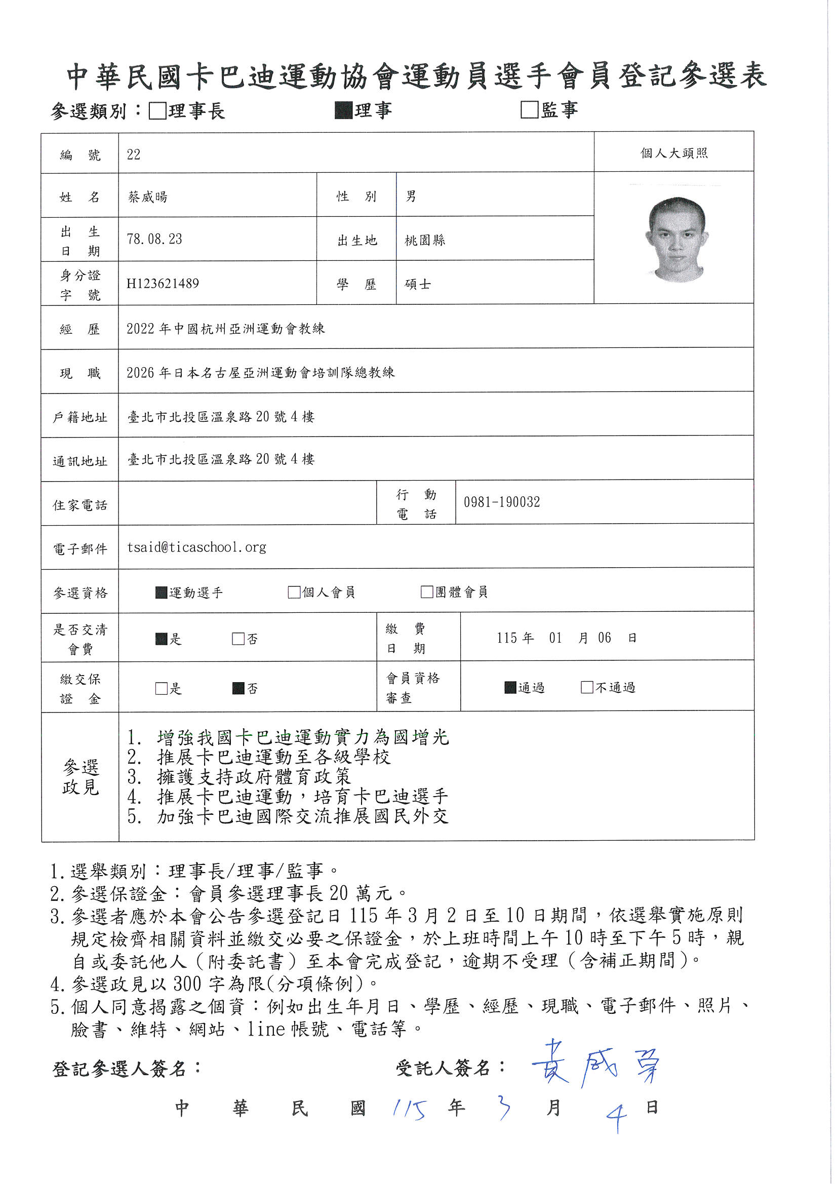 第五屆運動員理事參選登記候選人