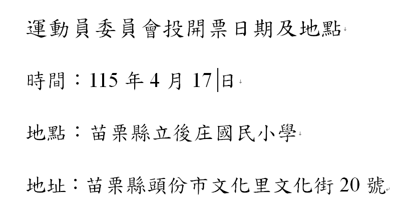 運動員委員之投開票日期及地點公告