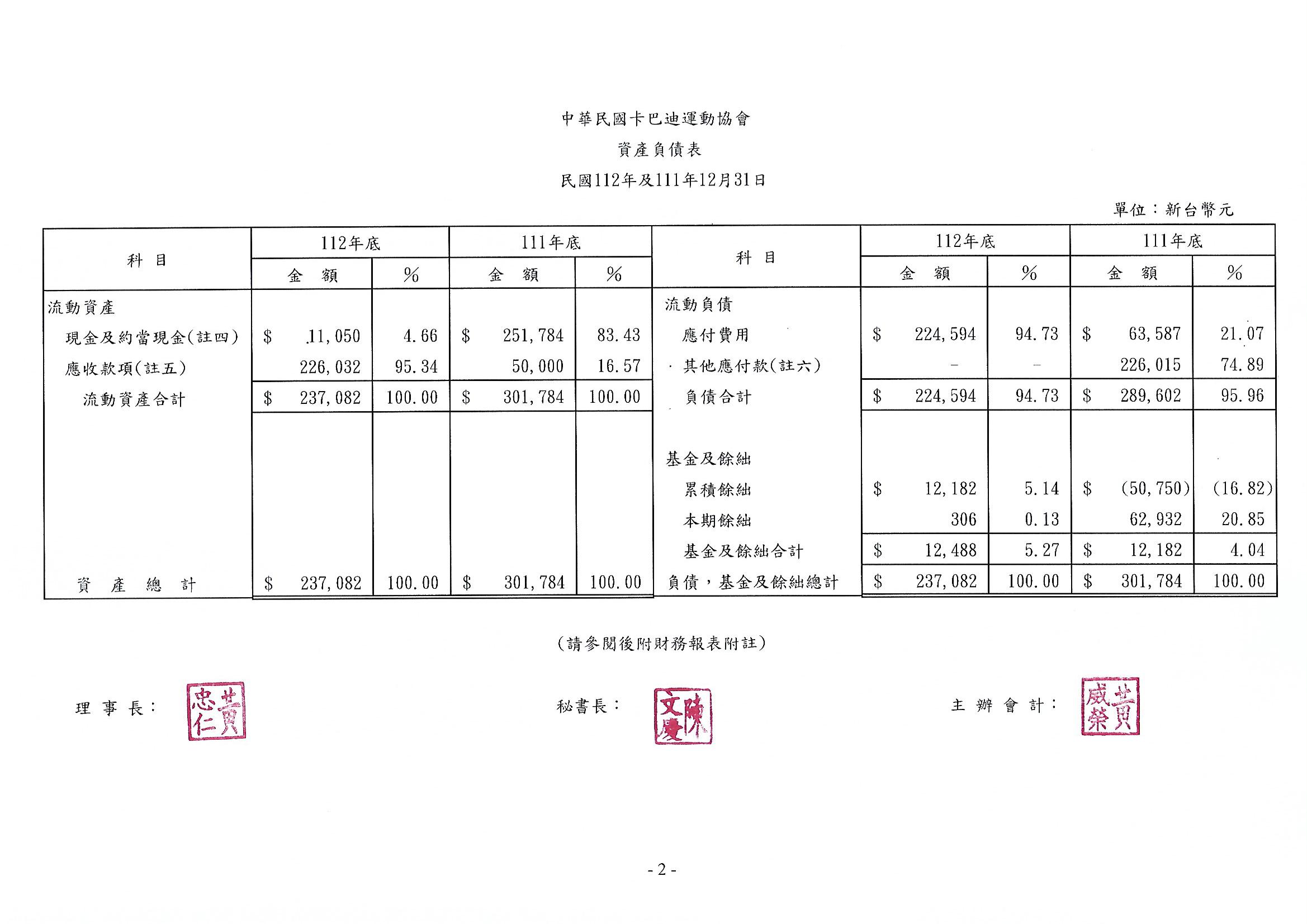 112年度資產負債表